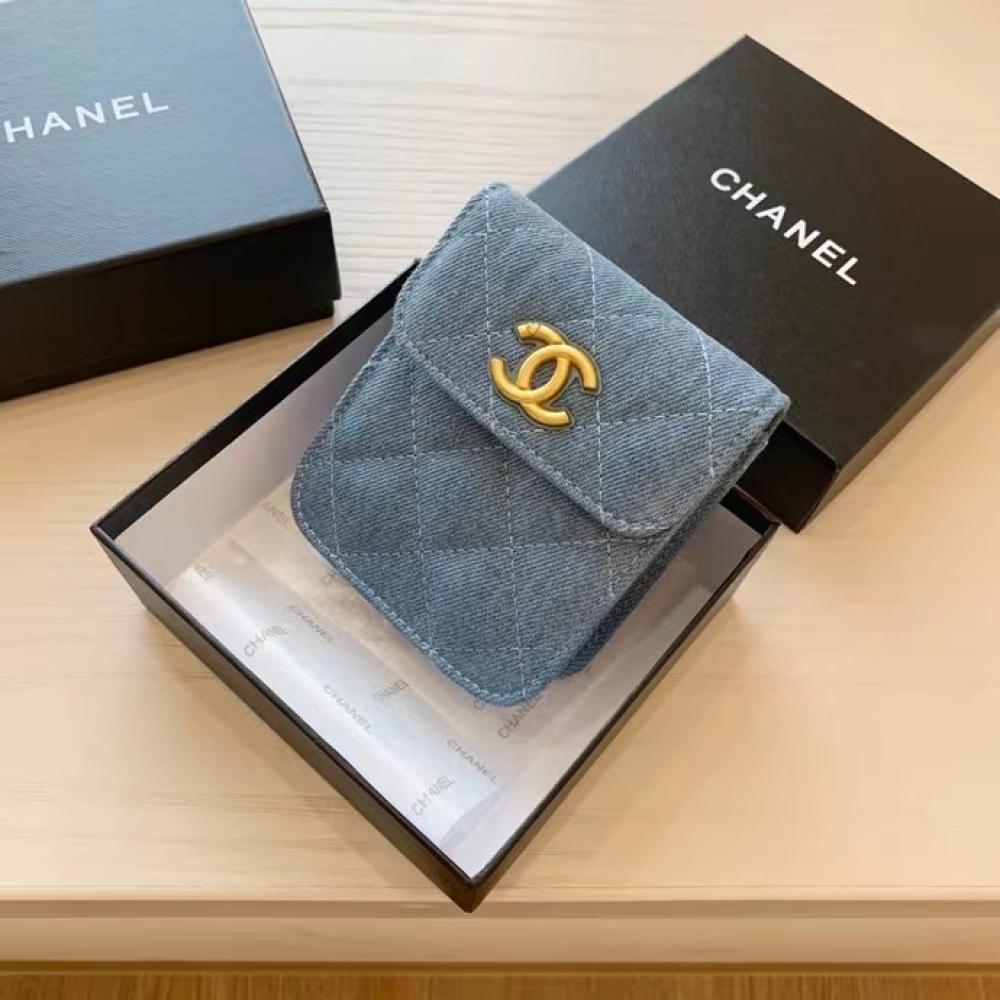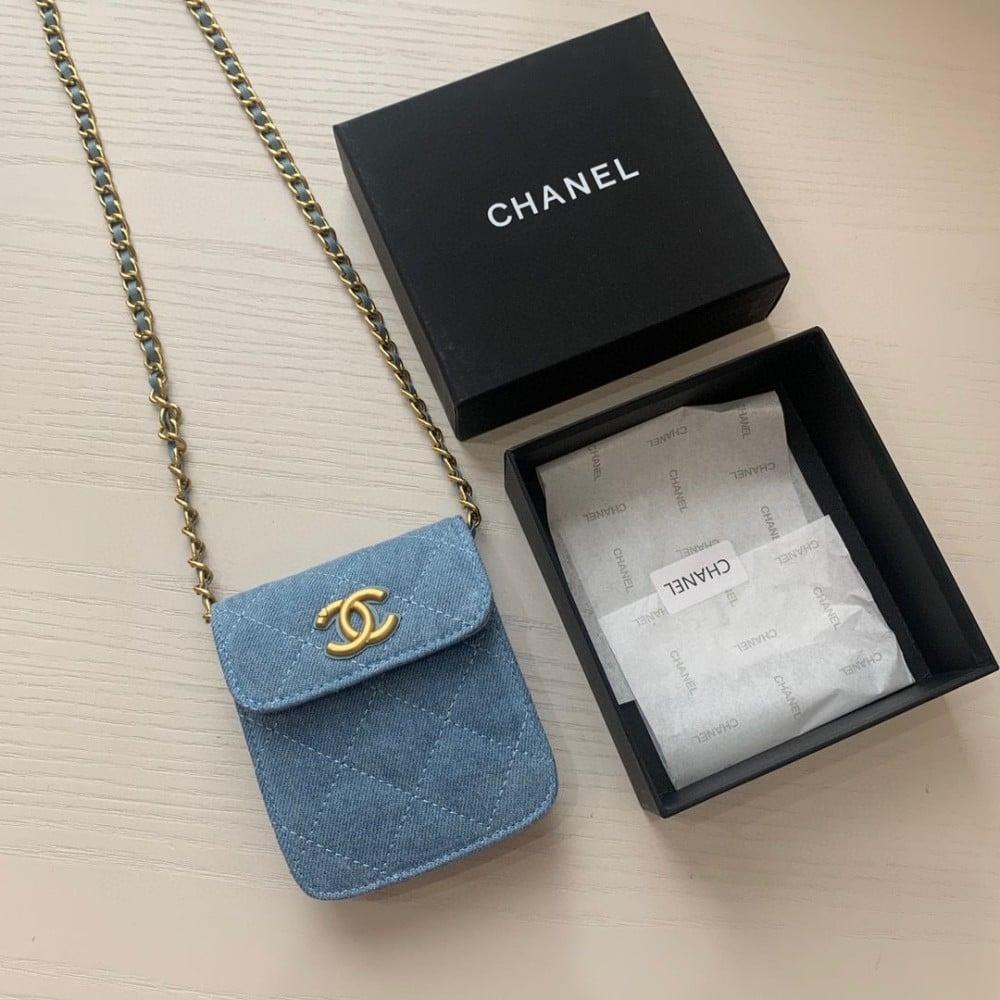 شانيل حقيبة خصر جينز برباط صغير مع سلسلة ذهبية وجينز اللون